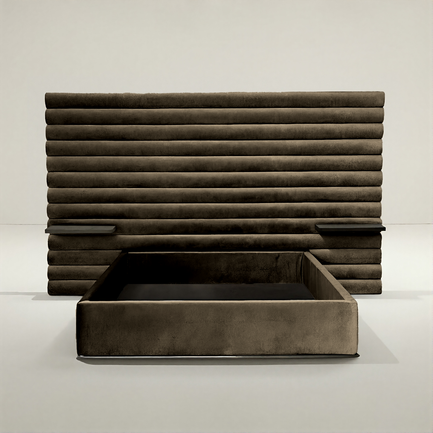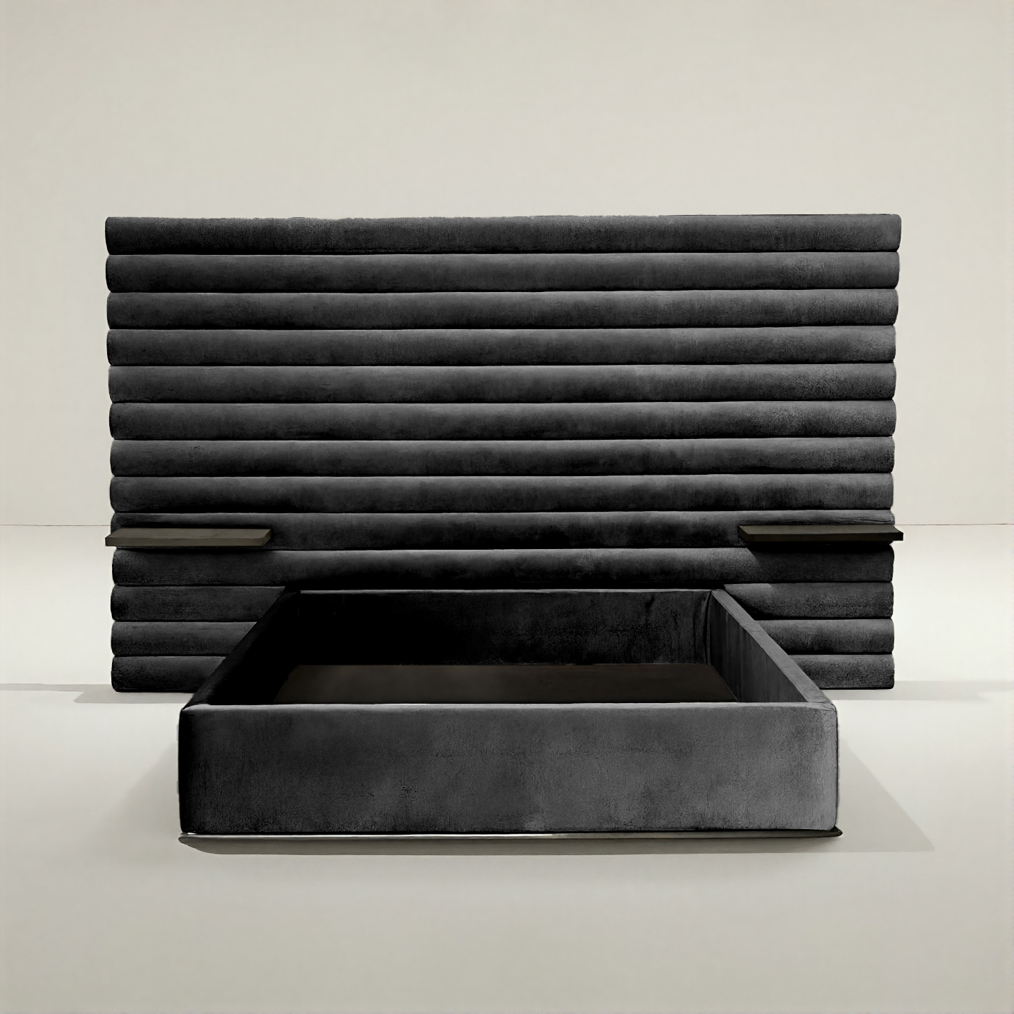 The Empire Bed is a monument of modern design — strong, structured, and unshakably refined. Its signature channel-tufted headboard commands attention, creating a sculptural backdrop that brings both depth and balance to any space.